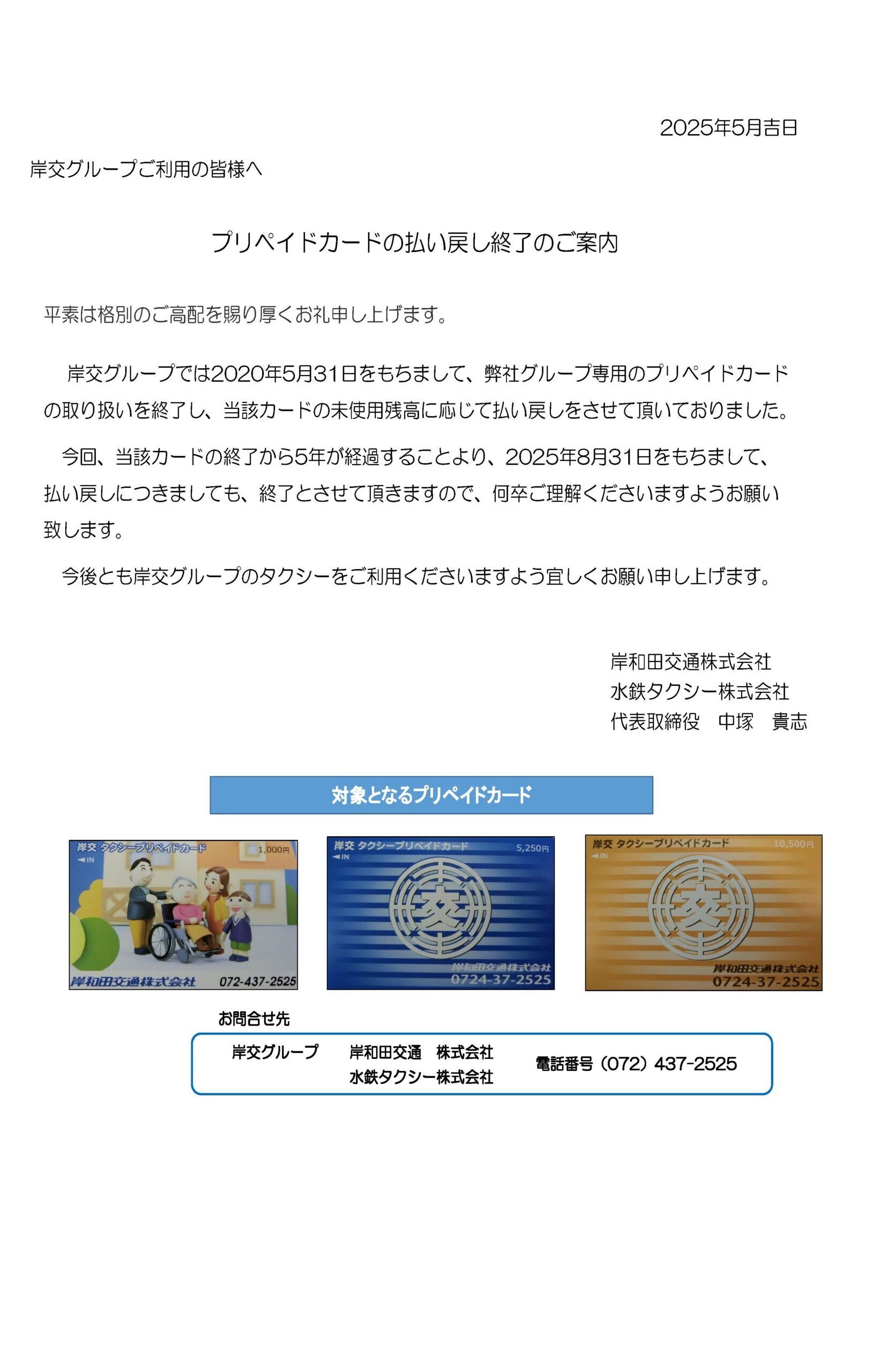 プリペイド・ポイントカード払い戻し終了のご案内